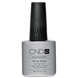 CND Brisa Gloss – финиш гель, закрепляющий гель. Супер стойкое финишное покрытие с зеркальным блеском. Полимеризуется в УФ лампе за 2-3 минуты. Липкий слой удаляется спонжиком с помощью масла для кутикулы.